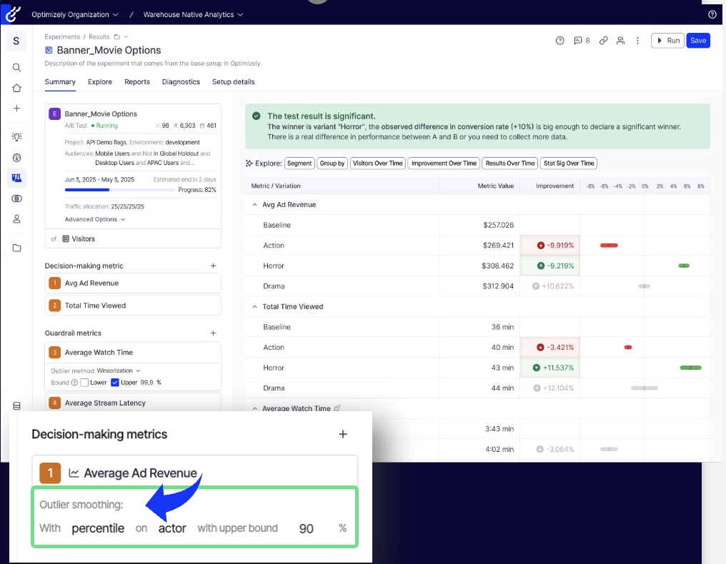 The Bayesian Stats Engine interprets probability in an intuitive, decision-focused way—answering questions like “how likely is this variation to be better?” It’s ideal for teams who want faster insights, continuous monitoring, and the flexibility to incorporate prior knowledge into their analysis.